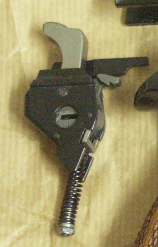El disparador es de simple acción, con un martillo externo montado en un armazón de seguridad.